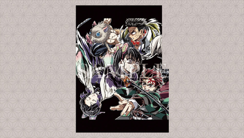 第一弾は竈門炭治郎・嘴平伊之助・栗花落カナヲ・胡蝶しのぶ・悲鳴嶼行冥のイラストです。