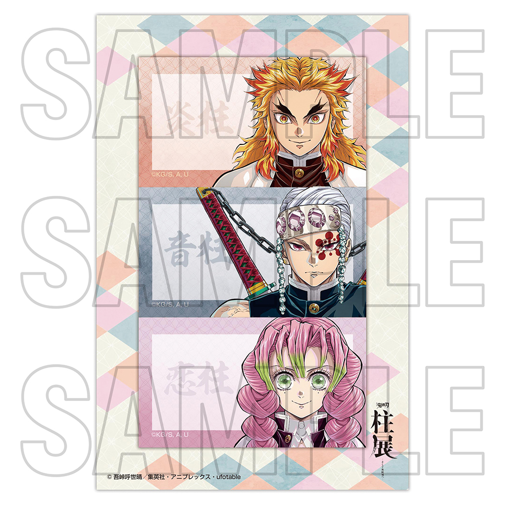 全9種[煉獄杏寿郎/宇髄天元/時透無一郎/甘露寺蜜璃/冨岡義勇/胡蝶しのぶ/悲鳴嶼行冥/不死川実弥/伊黒小芭内]価格:各400円(税込)